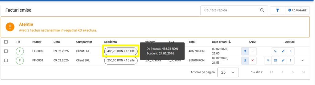 ⚠️ Atenție: Activând această opțiune, dacă emiți o factură cu o data emiterii în trecut (retroactiv), sistemul o va încărca automat la prima verificare pentru a asigura conformitatea.