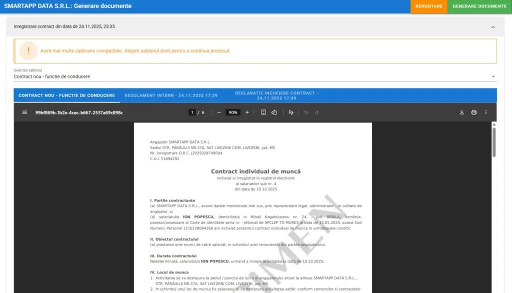 🛡️ Siguranță: Elimini riscul de a greși CNP-ul sau salariul în textul contractului.