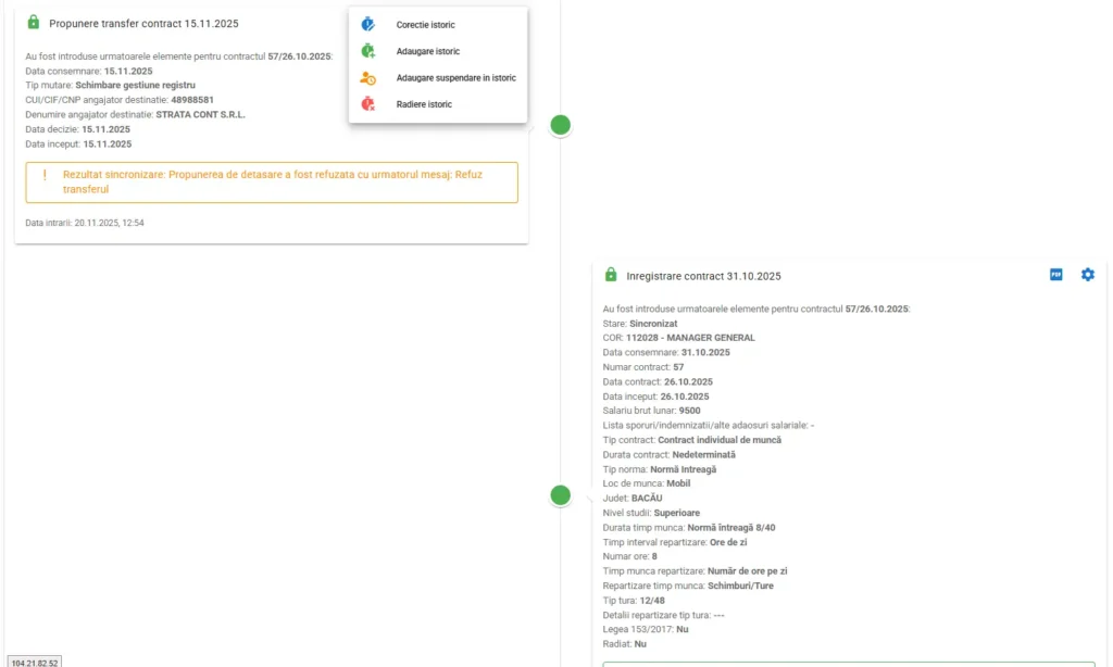 Prin acest mod de lucru, reduci la zero riscul de a trimite date eronate din greșeală. Ai totul organizat logic, documentele sunt generate pe baza datelor validate, iar istoricul tău va fi mereu aliniat perfect cu cerințele inspectorilor de muncă.