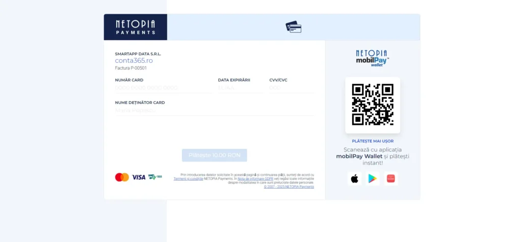 ➡️ Dacă pagina Netopia se încarcă și afișează formularul de plată, integrarea este realizată corect.
